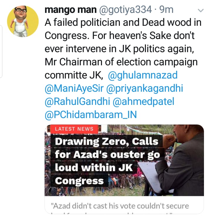According to sources, the local Unit of Congress was up in arms against Azad and might demand him to shoulder the responsibility of the poor performance in J&K.