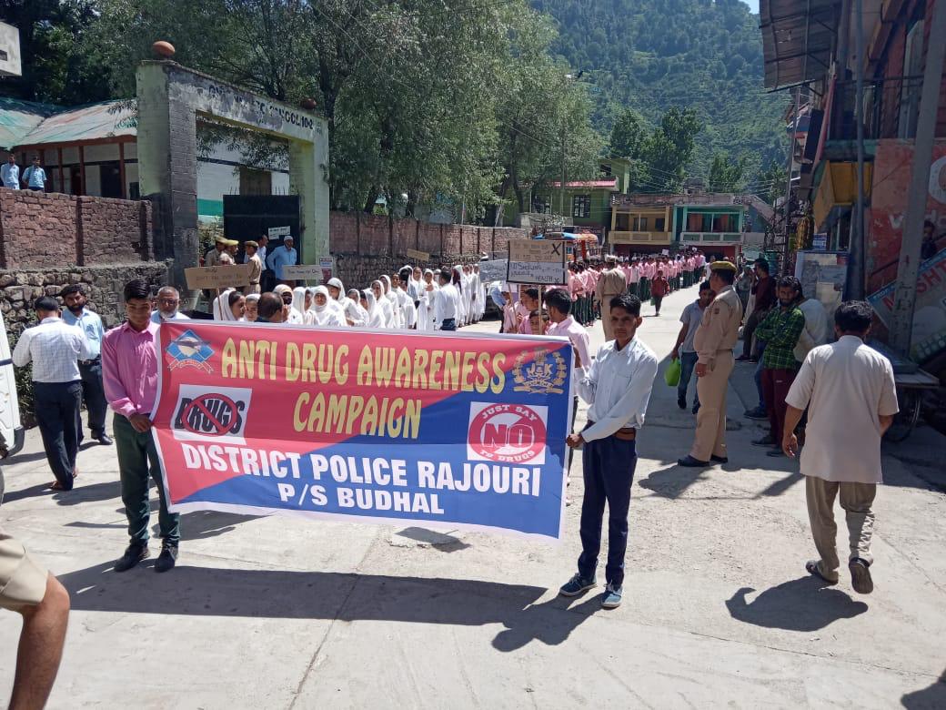 Rajouri,June 26:-In order to mark international day against drug abuse and illicit trafficking and to make people aware about the menace of addiction among youth, Jammu and Kashmir police organised a series of events across Rajouri district on Wednesday.